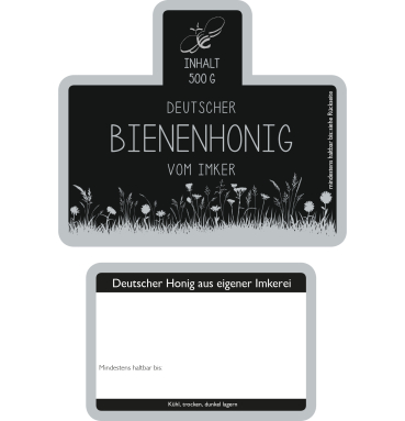 selbstklebend mit Aufdruck „Deutscher Bienenhonig vom Imker“ ohne Sortenbezeichnung Zusätzlich mit Rückseitenetikett für die Adresse 100 Stück