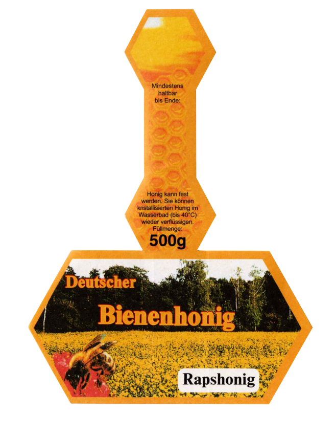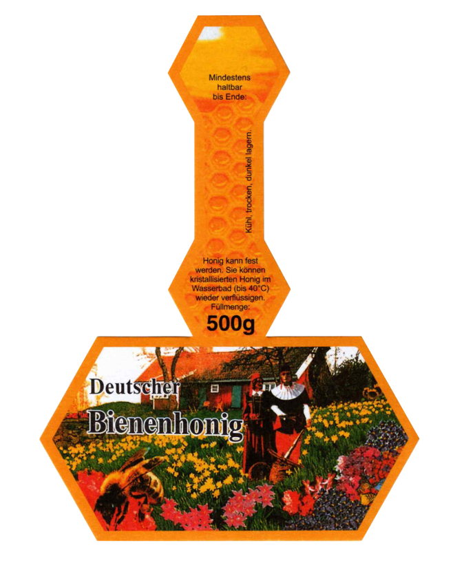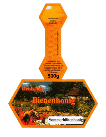 selbstklebend mit Deckellasche, mit Aufdruck „Deutscher Bienenhonig“ und Sortenbezeichnung 100 Stück Wählen Sie bitte die gewünschte Sorte aus.