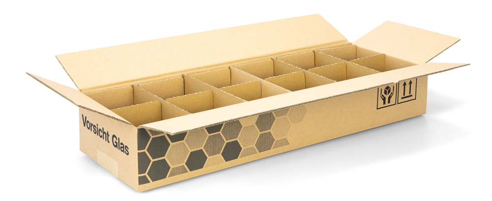 mit integriertem Innengefache passend für 12 x 500 g Gläser Außenmaß ca. 59,5 x 20,5 cm, Höhe 11 cm