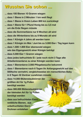 laminiertes Plakat in der Größe 61 x 43 cm mit 16 wissenswerten Informationen über die Bienenwelt