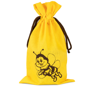 Beutel aus gefärbter Baumwolle mit Aufdruck „Biene“ und Kordel-Zugverschluss Passend für z. B. zwei 500-g-Honiggläser Größe ca. 27,5 x 16 cm