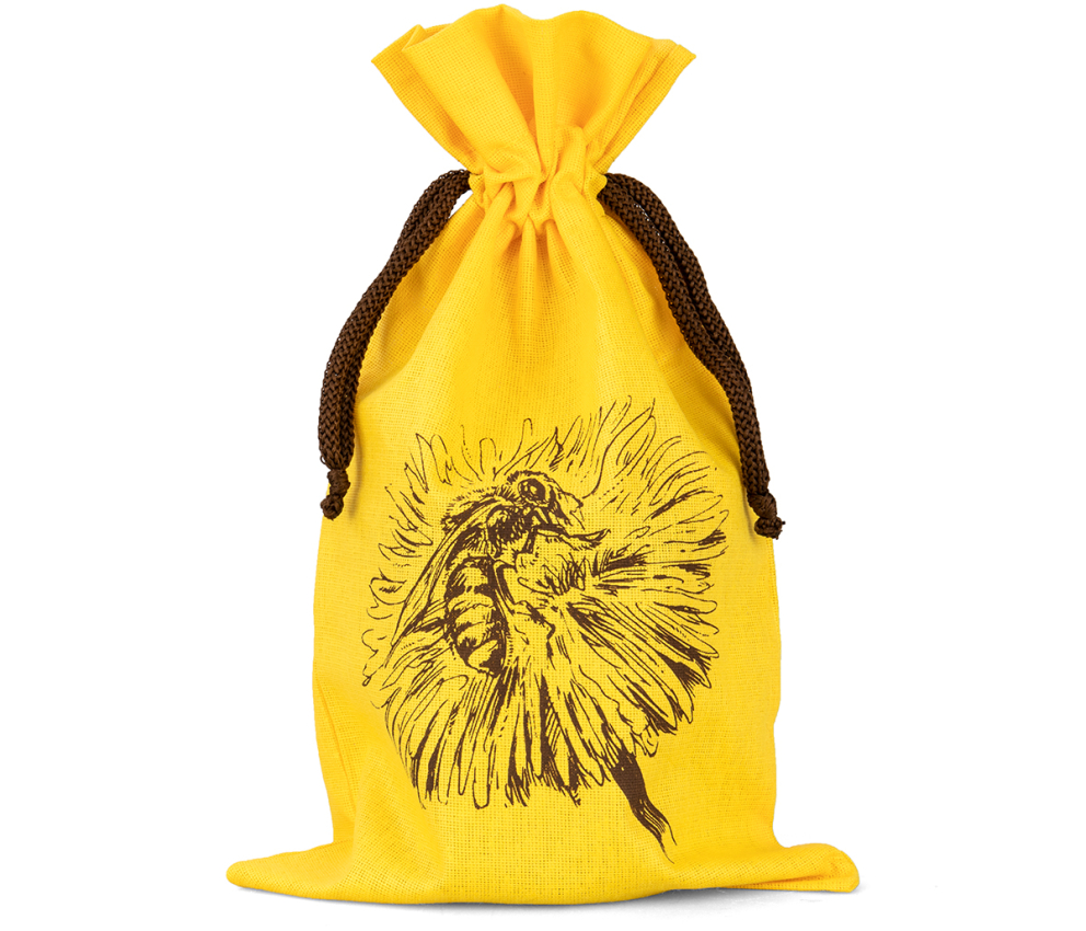 Beutel aus gefärbter Baumwolle mit Aufdruck „Blume“ und Kordel-Zugverschluss Passend für z. B. zwei 500-g-Honiggläser Größe ca. 27,5 x 16 cm