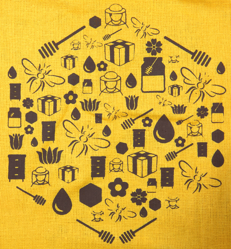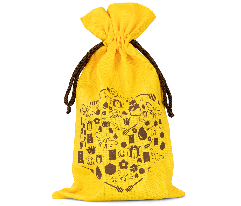 Beutel aus gefärbter Baumwolle mit Aufdruck „Hexagon“ und Kordel-Zugverschluss Passend für z. B. zwei 500-g-Honiggläser Größe ca. 27,5 x 16 cm