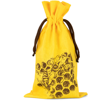 Beutel aus gefärbter Baumwolle mit Aufdruck „Wabe“ und Kordel-Zugverschluss Passend für z. B. zwei 500-g-Honiggläser Größe ca. 27,5 x 16 cm