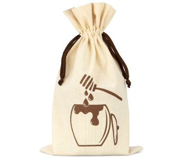 Beutel aus ungebleichter Baumwolle mit Aufdruck „Honigtopf“ und Kordel-Zugverschluss Passend für z. B. zwei 500-g-Honiggläser Größe ca. 27,5 x 16 cm