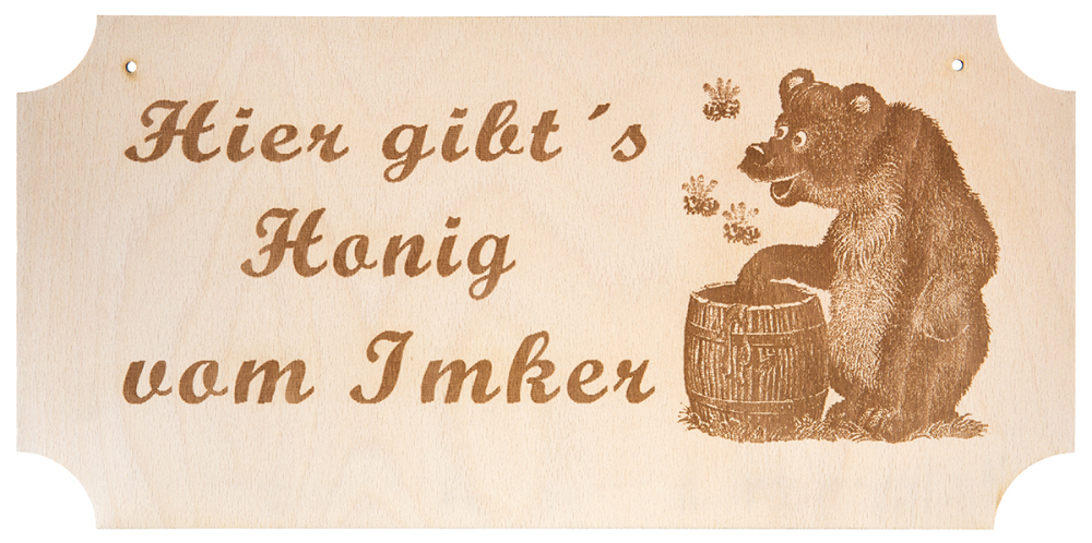 aus Holz mit 2 Löchern zur Befestigung, Bild und Text sind gelasert Größe 45 x 22 cm, Materialstärke 4 mm Unbehandelt für den Außeneinsatz nicht geeignet, Schutzanstrich mit einer Lasur oder Bottichlack erforderlich