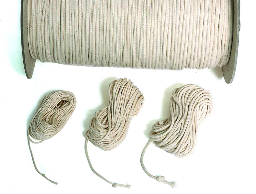 für Kerzen aus Bienenwachs Knoten = Kopf der Kerze, Rolle ca. 1,1 kg Dochtstärken von 0 bis 20