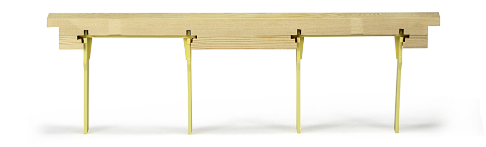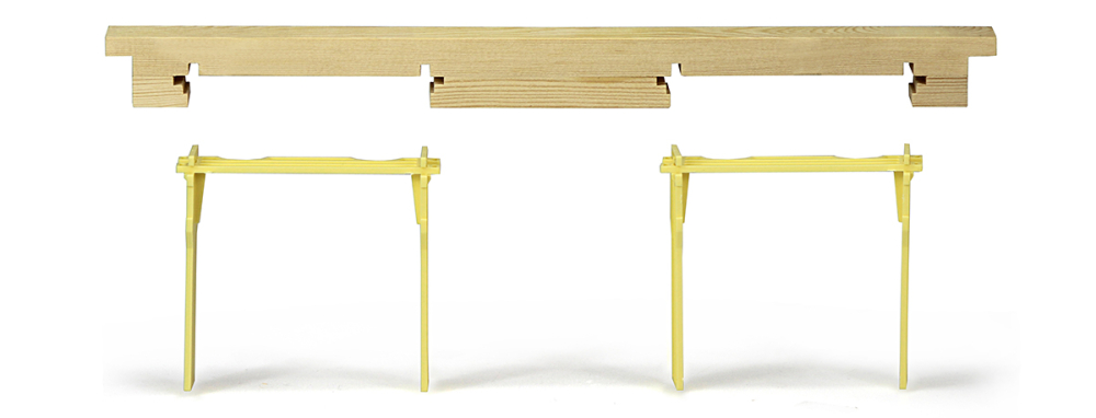 Normalmaß Oberträger mit Vorrichtung zum Einspannen von zwei Rütli® oder Apidea Kunststoff-Rähmchen. Außenmaß ca. 32 x 32 mm, Länge 394 mm