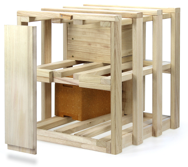 klassische Tragehilfe aus Holz passend für acht Rütli®, Api'deus® oder Apidea Begattungskästen. Außenmaß ca. 44 x 44 cm, Gewicht lediglich 4 kg