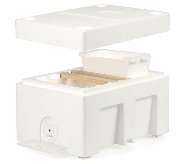mit Bodenschieber, herausnehmbarer Futterkammer und verschließbarem Deckel, stapelbar, Aussparung für vier bis sechs Rähmchenleisten, Artikel-Nr. 4932, bitte separat mitbestellen