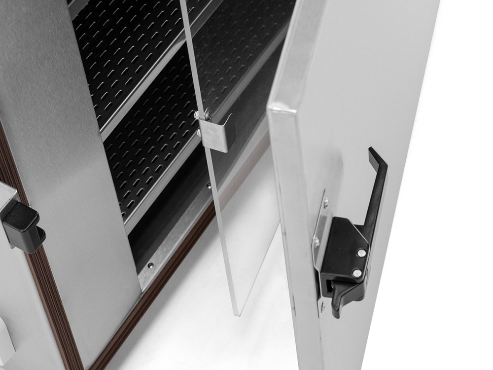 zweite Tür innen aus Plexiglas zur Beobachtung ohne Klimastörung
