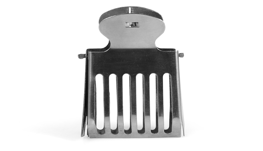 aus Edelstahl mit Edelstahlfeder und 4,2 mm breiten Öffnungen, so können die Arbeiterinnen passieren und die Königin bleibt im Clip