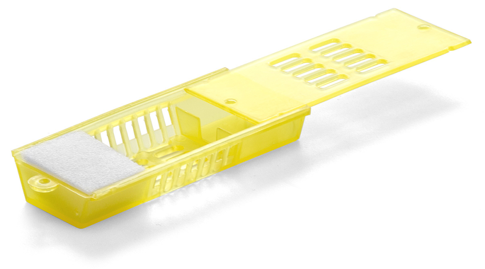 mit Befestigungsöse und Schwamm, für einen Flüssigkeitsvorrat während des Versands Maße ca: 80 x 35 x 12 mm