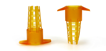 zum Einhängen in die Wabengasse Höhe ca. 40 mm, Ø oben ca. 14 mm Oberträger ca. 35 mm Beutel mit 10 orangenen Käfigen