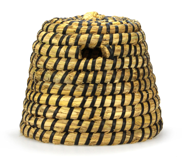 aus Stroh und mit dunklem Band handgeflochten nach klassischem Vorbild. Größe ca. 34 x 23 cm, Wandstärke 2 cm, Gewicht ca. 1,5 kg