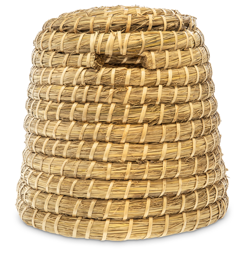 aus Stroh und mit Bambusband handgeflochten in der Form des Lüneburger Stülpers. Größe ca. 40 x 50 cm, Wandstärke 3 cm, Gewicht 2 kg