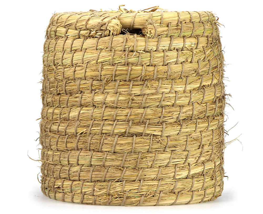aus Stroh und mit Sisalband handgeflochten in der Form des Lüneburger Stülpers. Größe ca. 35 x 37 cm, Wandstärke 3 cm, Gewicht 2,5 kg