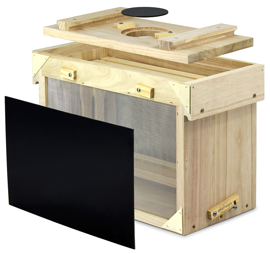 aus Holz, mit beidseitig verschließbarer Lüftung, Flugloch und Spundlochdeckel. Passend für 5 Rähmchen Normalmaß