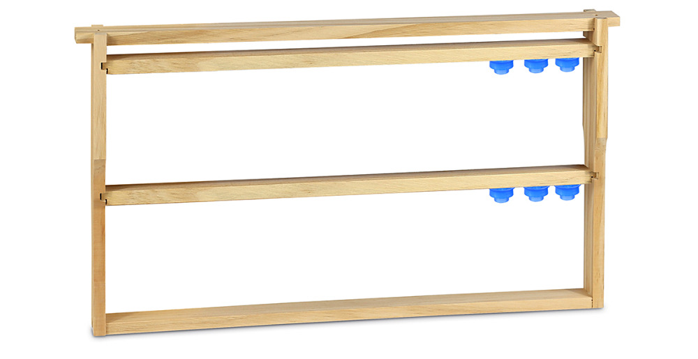 Normalmaß Rähmchen mit zwei herausnehmbaren Zuchtlatten zur direkten Aufnahme der Bieno®Plast Weiselnäpfe Art-Nr. 4830, 4834 und Verschulungskäfige Art-Nr. 4965. Außenmaß 394 x 223 mm