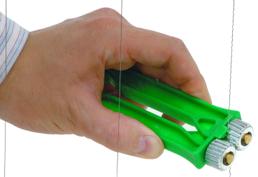 mit extra gehärteten Stahlzahnrädern. Durch das leichte Zusammendrücken der Rädchen wird der Wabendraht gespannt Länge ca. 13 cm, Ø Räder 1,7 cm, Gewicht 60 g