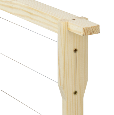 waagerecht gedrahtet, 8-fach geöst Holzstärke: Oberträger 22 x 19 mm Ohren auf 10 mm abgesetzt, Seitenteile und Unterträger 10 mm Länge: Oberträger 477 mm / Unterträger 420 mm Höhe: 220 mm Preis pro Rähmchen