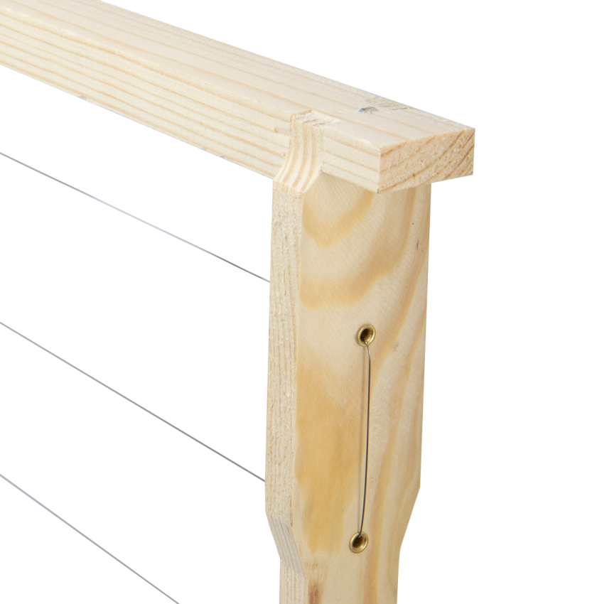 waagerecht gedrahtet, 10-fach geöst Holzstärke: Oberträger 25 x 15 mm Ohren auf 10 mm abgesetzt, Seitenteile 10 mm, Unterträger 15 mm Länge: Oberträger 470 mm / Unterträger 435 mm Höhe: 300 mm Preis pro Rähmchen