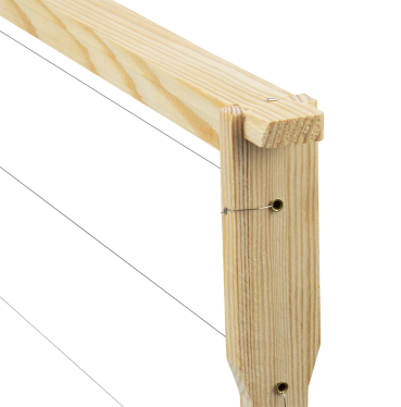 waagerecht gedrahtet, 8-fach geöst Holzstärke: Oberträger 27 x 20 mm Ohren 25 x 10 mm Seitenteile und Unterträger 10 mm Länge: Oberträger 482 mm / Unterträger 448 mm Höhe: 285 mm Preis pro Rähmchen