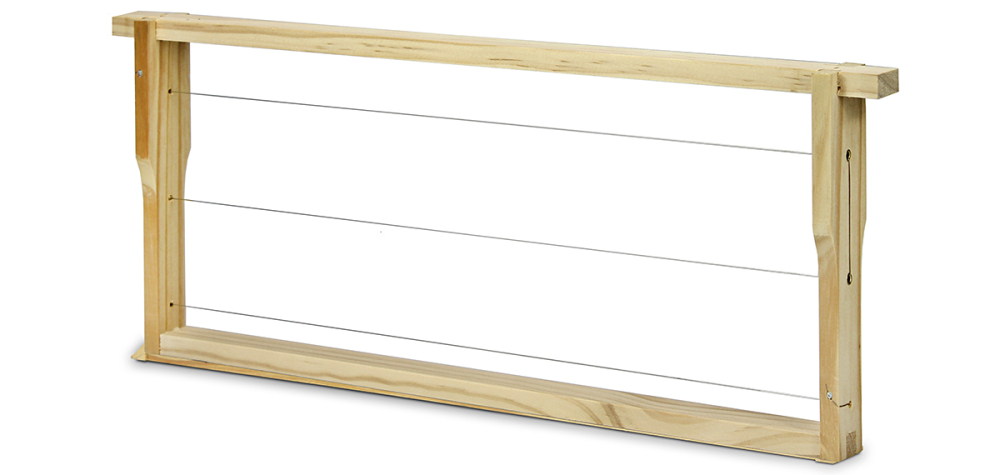 z.B. für Segeberger und Frankenbeute® waagerecht gedrahtet, 6-fach geöst Holzstärke: Oberträger 10 mm Ohren auf 8 mm abgesetzt Länge: Oberträger 394 mm / Unterträger 370 mm Höhe: 159 mm Preis pro Rähmchen