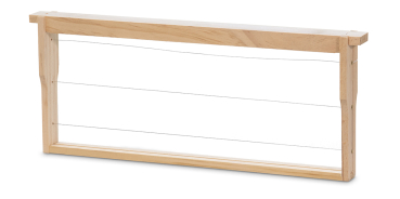 z.B. für Segeberger und Frankenbeute® waagerecht gedrahtet, 6-fach geöst Holzstärke: Oberträger 19 mm Ohren auf 8 mm abgesetzt Länge: Oberträger 394 mm / Unterträger 370 mm Höhe: 159 mm Preis pro Rähmchen