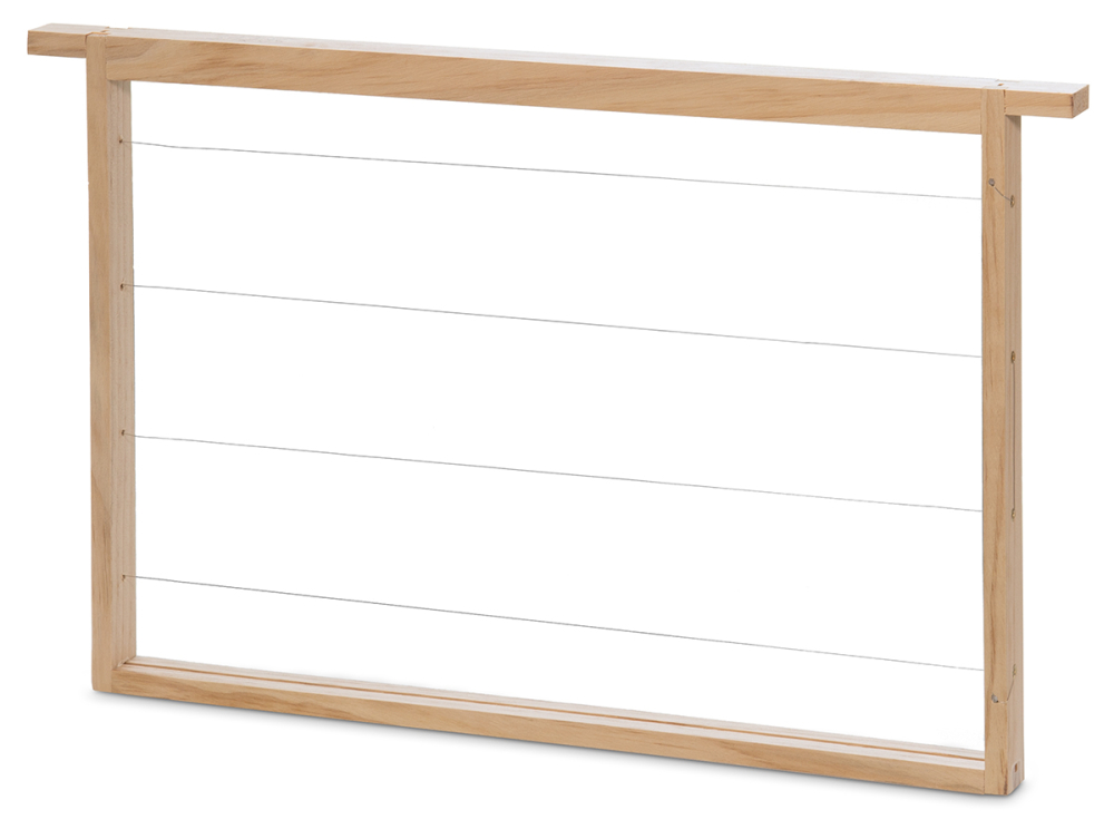 waagerecht gedrahtet, 8-fach geöst Holzstärke: Oberträger 19 x 22 mm Ohren auf 10 mm abgesetzt Holzbreite: rundum 22 mm Länge: Oberträger 477 mm / Unterträger 420 mm Höhe: 285 mm Preis pro Rähmchen