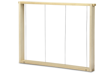 senkrecht gedrahtet, 8-fach geöst Holzstärke: rundum 8 mm Länge: Oberträger 344 mm / Unterträger 328 mm Höhe: 250 mm Preis pro Rähmchen
