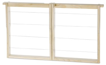 gedrahtet mit 0,4 mm Edelstahl-Wabendraht. Passend für den Dadant US Vertikal Begattungskasten Art 4892. Zwei Rähmchen zusammengesteckt ergeben ein Dadant US Brutraumrähmchen von 482 x 285 mm, somit können Brut oder Königin bequem umgesetzt werden. Die zwei Rähmchen halten alleine durch die Spezialausfräsung zusammen, Preis pro Rähmchen Außenmaß 257 x 285 mm Ausschließlich passend für Dadant US Vertikal Begattungskasten, Art. 4892