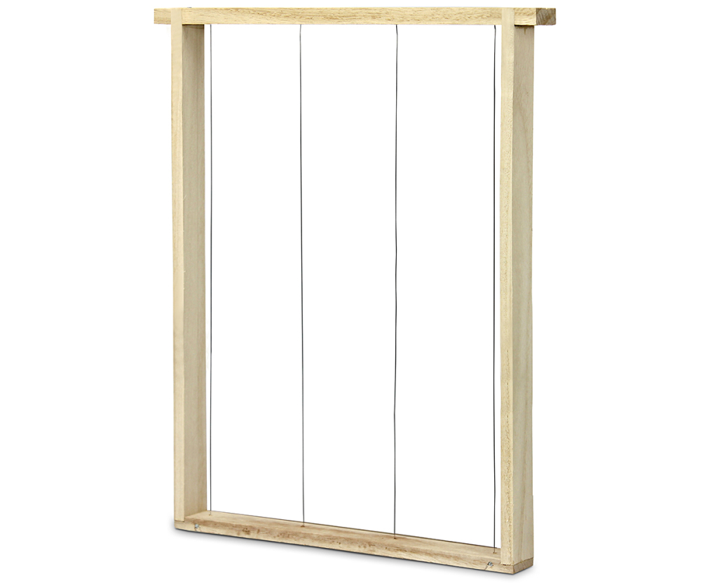 senkrecht gedrahtet, 8-fach geöst Holzstärke: Oberträger 10 mm Länge: Oberträger 280 mm / Unterträger 250 mm Höhe: 335 mm Preis pro Rähmchen