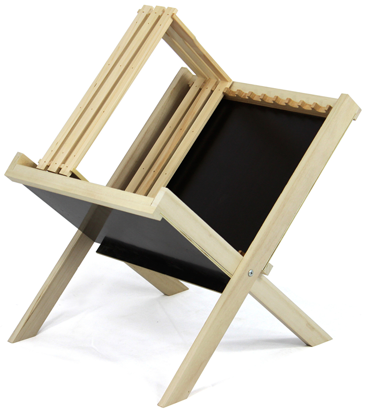aus Holz mit drei Abstandsstreifen. Praktische Abstellfläche für bis zu 11 Waben bei jeder Durchsicht oder Honigentnahme. Außenmaß: 50 x 47,5 cm, Höhe: 47,5 cm, Gewicht ca. 2 kg