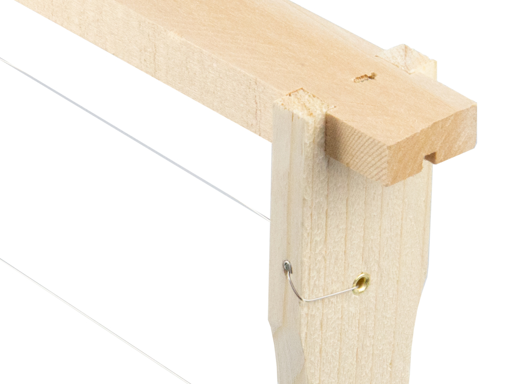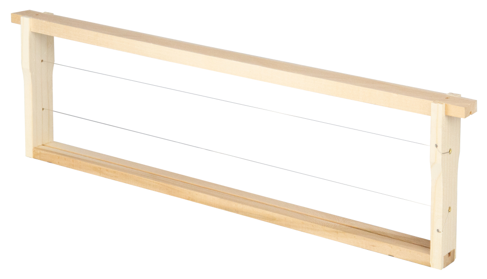 waagerecht gedrahtet, 4-fach geöst Holzstärke: Oberträger 27 x 14 mm Ohren 25 x 10 mm Länge: Oberträger 482 mm / Unterträger 448 mm Höhe: 141 mm Preis pro Rähmchen