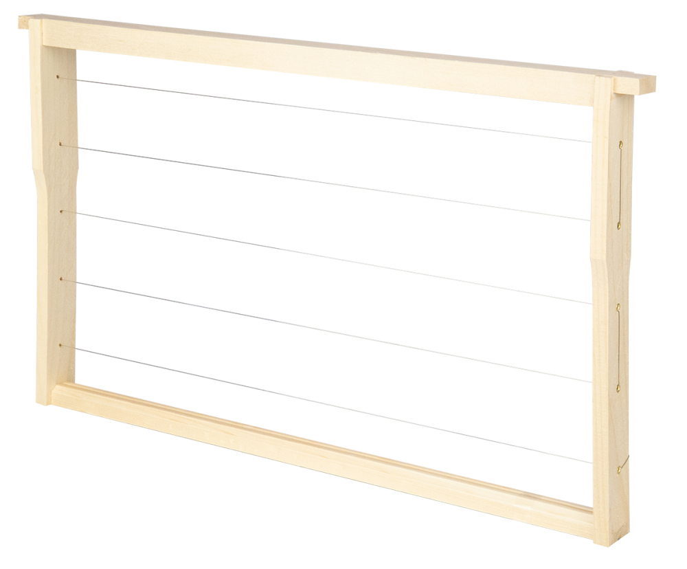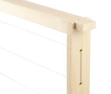 waagerecht gedrahtet, 10-fach geöst Holzstärke: Oberträger 27 x 22 mm Ohren 25 x 10 mm Länge: Oberträger 482 mm / Unterträger 448 mm Höhe: 285 mm Preis pro Rähmchen