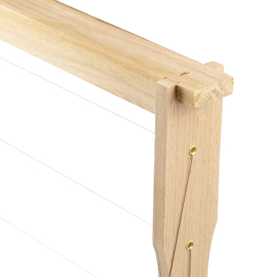 waagerecht gedrahtet, 8-fach geöst Holzstärke: Oberträger 19 x 24 mm Ohren auf 8 mm abgesetzt Länge: Oberträger 394 mm / Unterträger 370 mm Höhe: 223 mm Preis pro Rähmchen