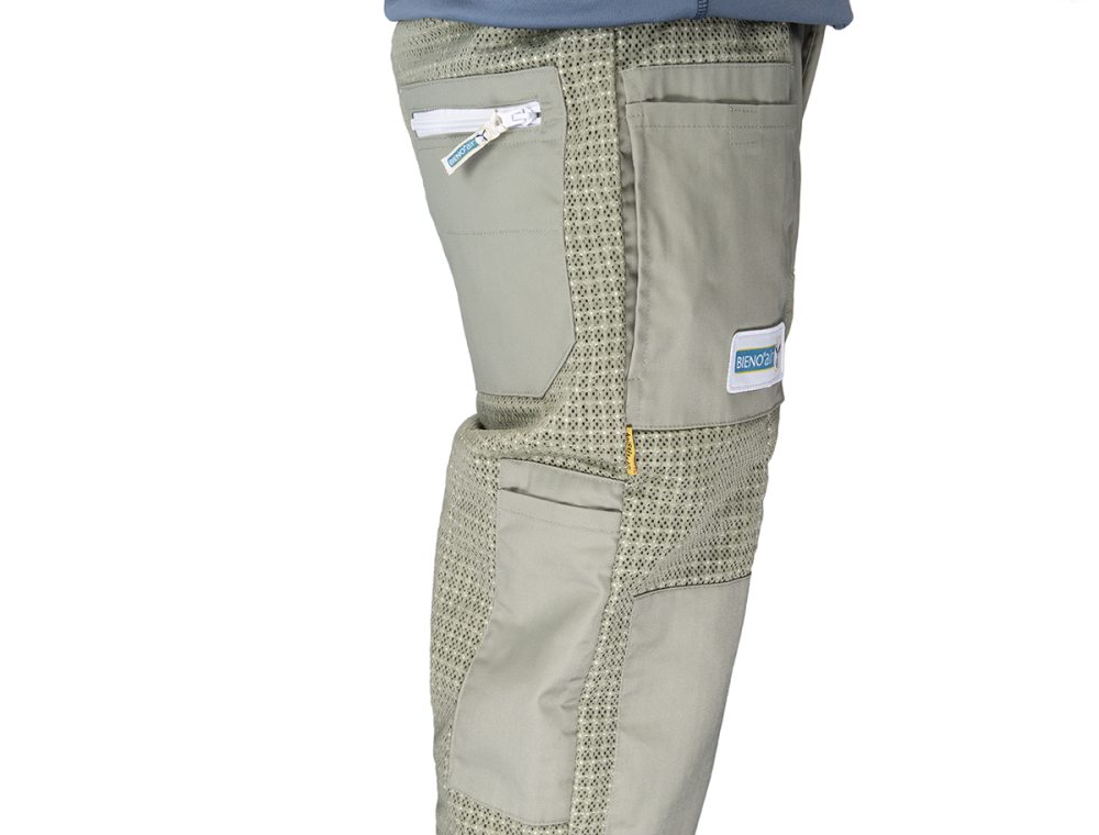 Die ventilierende Schutzhose in innovativer BienoAir® Machart - luftig und atmend. Hergestellt in drei Lagen, khaki und voll waschbar. Angenehmer, leichter Tragekomfort gepaart mit praktischen Details wie verdecktem Reißverschluss, neun Taschen und Gummibündchen an den Beinen