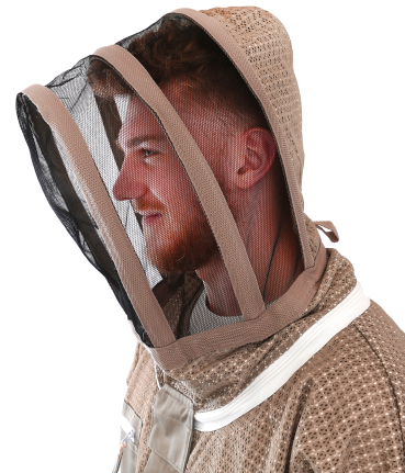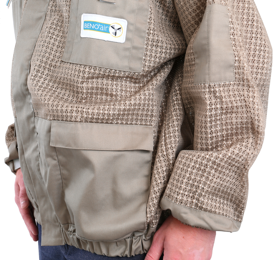 Die ventilierende Schutzbekleidung in innovativer BienoAir® Machart - luftig und atmend. Hergestellt in drei Lagen, terra und voll waschbar. Angenehmer, leichter Tragekomfort gepaart mit praktischen Details wie verdecktem Reißverschluss, fünf verschließbaren Taschen, einstellbaren Gummibündchen an den Ärmeln sowie sich selbst aufstellender, englischer Imkerhaube Design registriert beim DPMA und gesetzlich geschützt