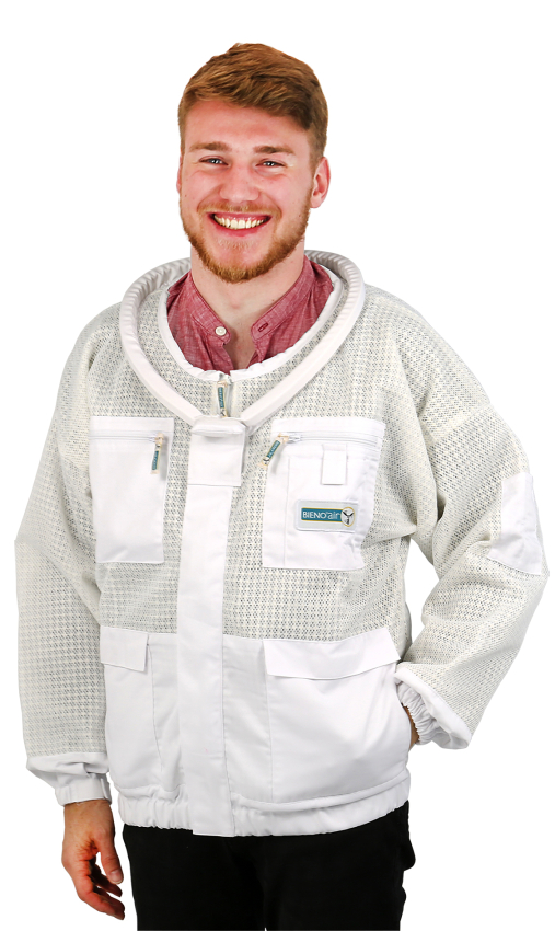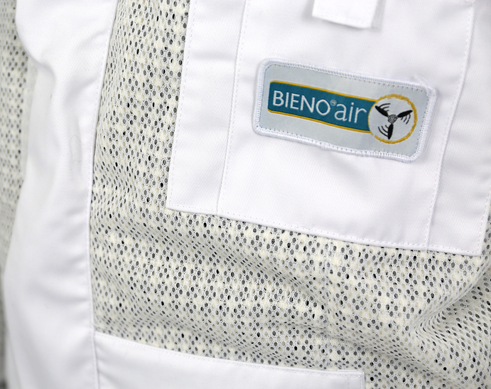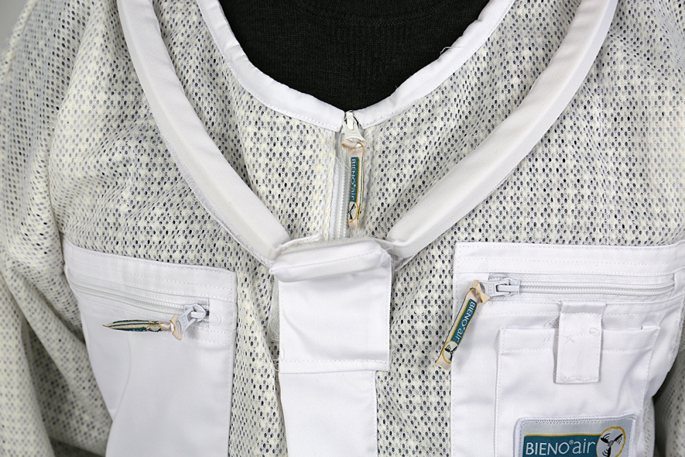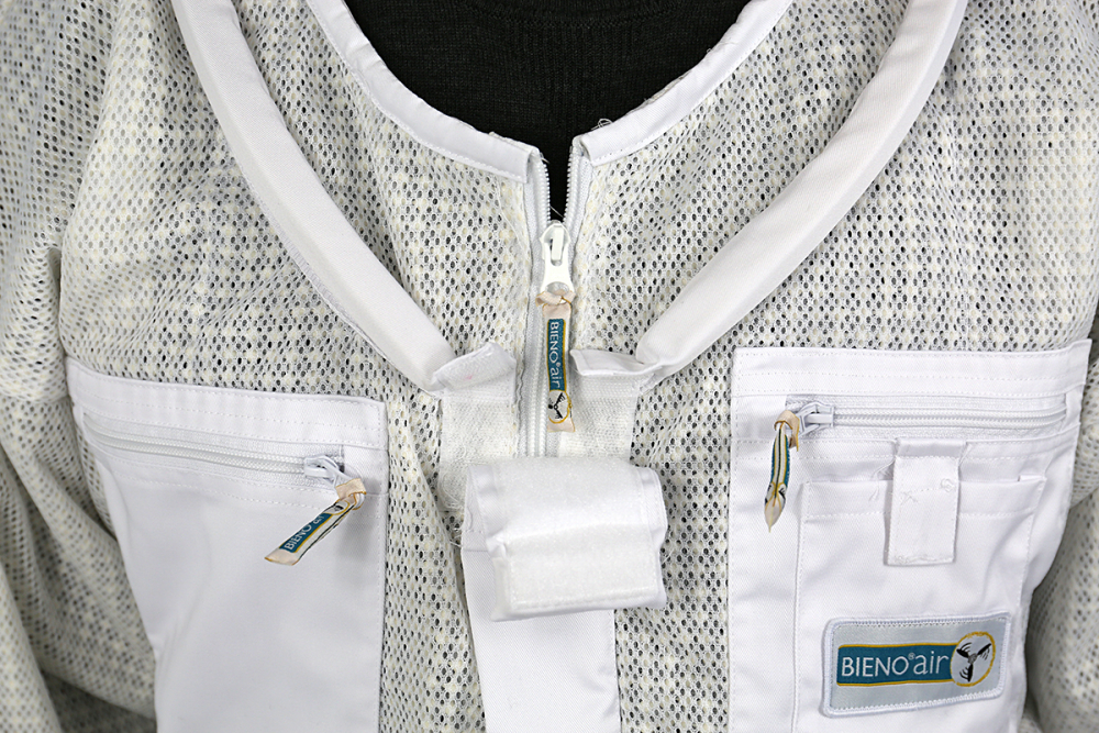 Die ventilierende Schutzbekleidung in innovativer BienoAir® Machart - luftig und atmend. Hergestellt in drei Lagen, weiß und voll waschbar. Angenehmer, leichter Tragekomfort gepaart mit praktischen Details wie verdecktem Reißverschluss, fünf verschließbaren Taschen, einstellbaren Gummibündchen an den Ärmeln sowie kräftigem Wulstkragen zur Befestigung eines Ami-Schleiers