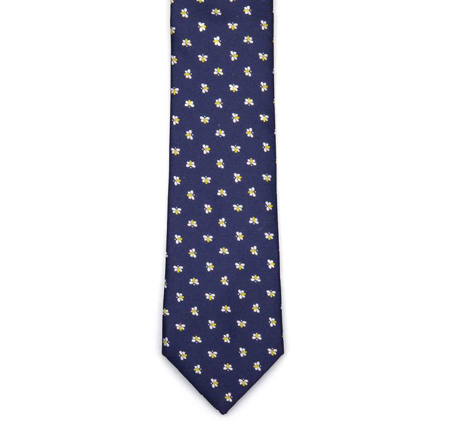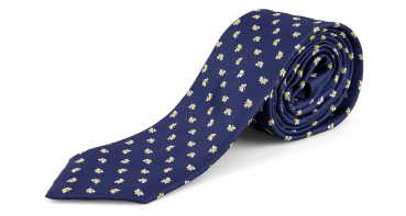dunkelblau mit gestickten Bienen, hergestellt aus Polyester, Breite ca. 8 cm, Länge 150 cm