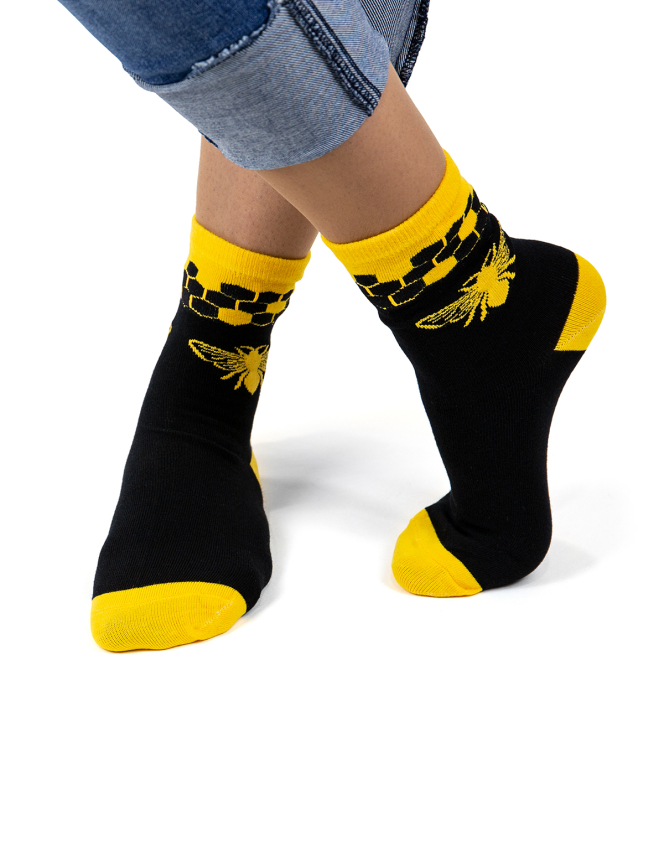 mit schwarz-gelben Bienenmotiv, hergestellt aus 75 % Baumwolle und 25 % Polyester