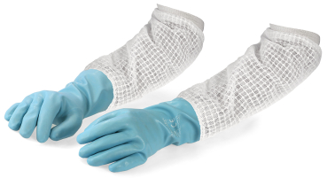 aus Naturkautschuk, hellblau, mit Baumwoll-Innentrikot, kombiniert mit innovativer BienoAir® Stulpe. Hergestellt aus drei Lagen in luftig-leichter Machart Design registriert beim DPMA und gesetzlich geschützt