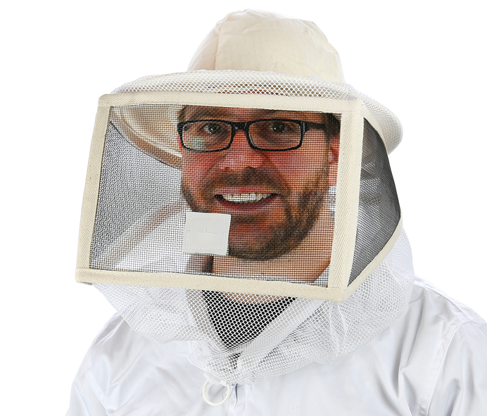 faltbar, aus stabilem Drahtgeflecht, mit Gummizug zur Befestigung am Wulstkragen einer Imkerjacke oder eines Schutzanzuges. Sehr gut mit dem Sonny Imkerhelm oder dem Ami-Hut kombinierbar mit Pfeifenloch
