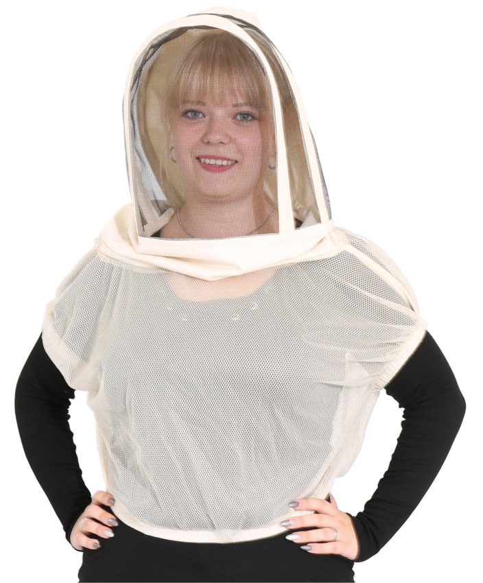 mit Gummischlaufen und Stehhaube sowie Nackenschutz durch rücksei- tigen Köperstoff