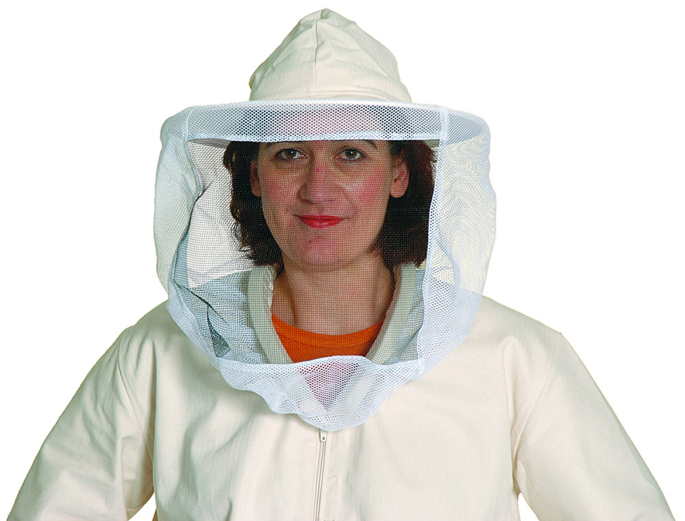 klassische Kombination aus einem Ami-Hut und einem weichen Tüllschleier, fest zusammengenäht, mit Gummizug zur Befestigung am Wulstkragen einer Imkerjacke oder eines Imkeranzuges preiswert, leicht und sicher