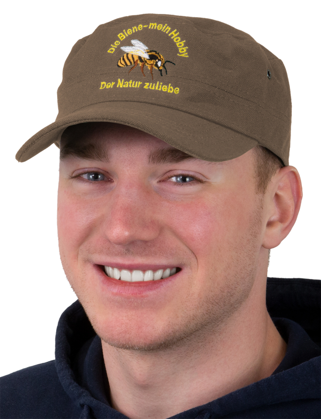 hochwertige Schirmmütze mit Bienenmotiv, Universalgröße mit Klettverschluss hinten oliv