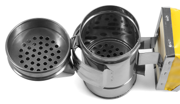 handlicher Kindersmoker aus Edelstahl. Ausgestattet mit einem Innenrauchgitter, Vinyl-Blasebalg und einem Außenschutzblech Ø 6,5 cm, Höhe 17,5 cm, Gewicht lediglich 200 g