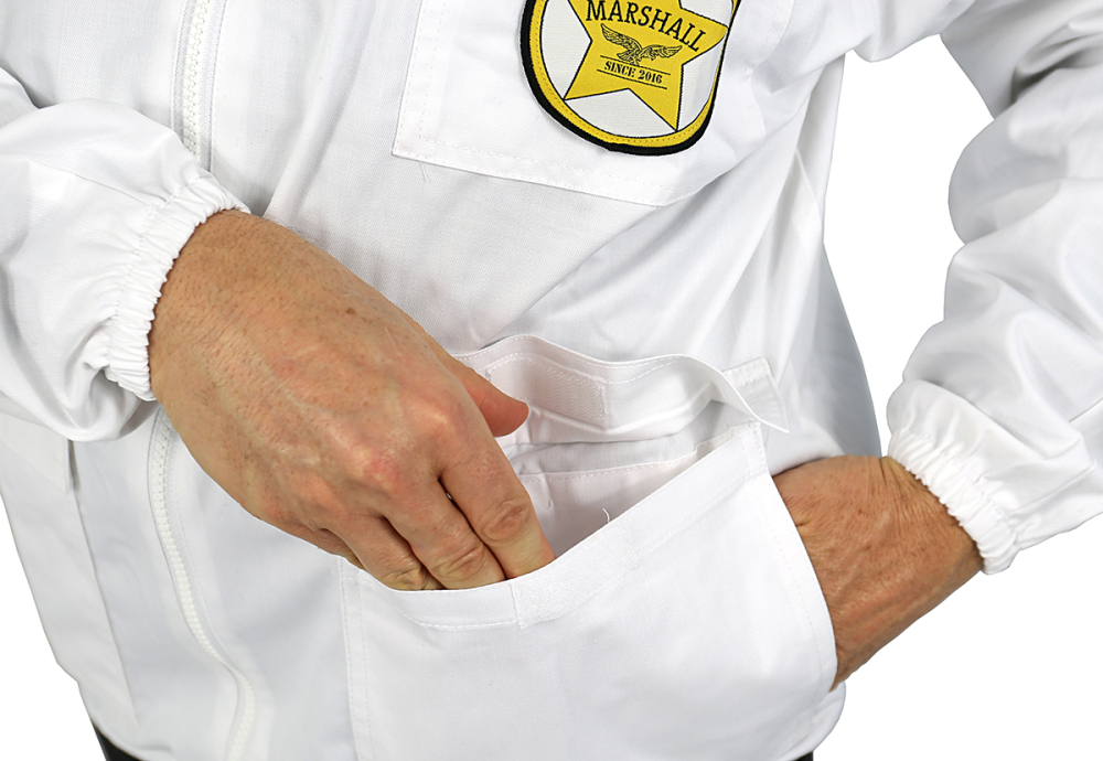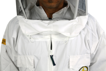 Besonders leichte und ergonomische Imkerbluse, hergestellt aus 65% Polyester und 35% Baumwolle, weiß und voll waschbar. Ausgestattet mit vier großen Taschen, Gummibündchen an den Ärmeln mit zusätzlicher Daumenschlaufe sowie strapazierfähigen YKK-Reißverschlüssen. Besonderheit: Die sich selbst aufstellende Imkerhaube nach englischem Vorbild mit schwarzem ProFlex Visiergewebe