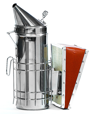 10 cm mit hohem Edelstahlkessel, Innen- Rauchgitter, Außenschutzgitter mit Anhängehaken und Lederblasebalg Höhe ca. 34 cm